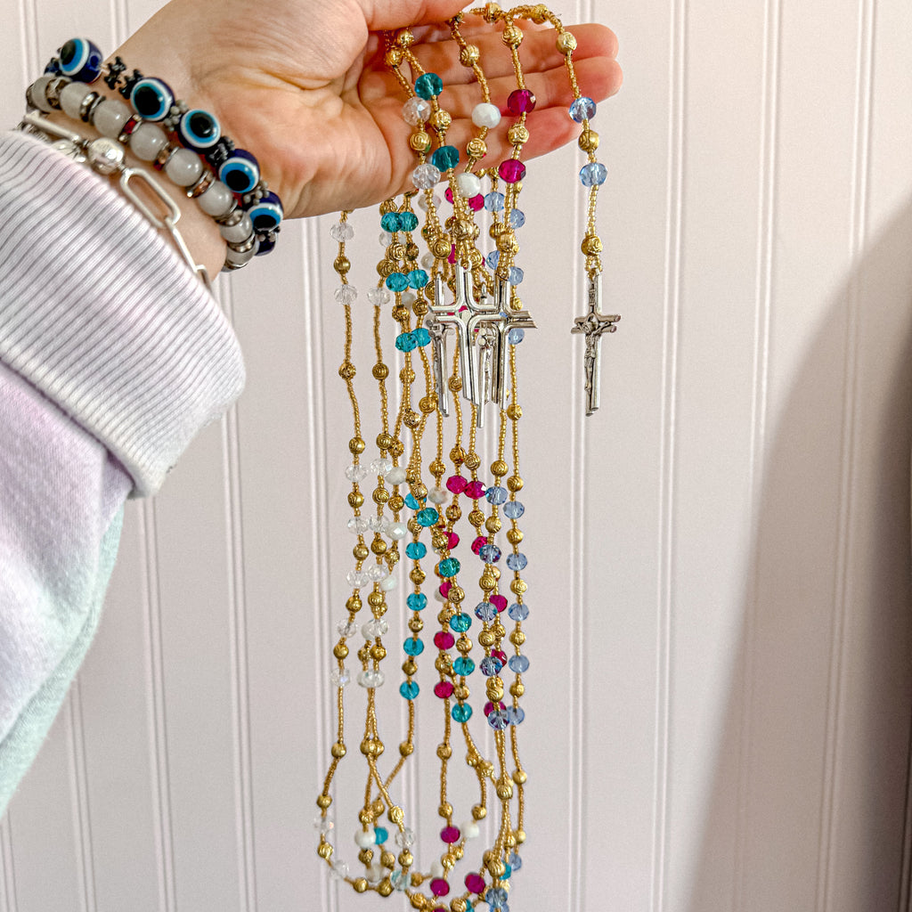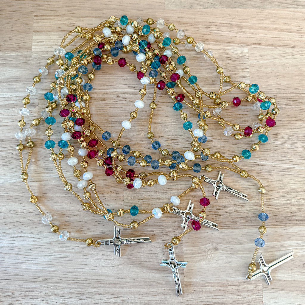 Pray with intention and beauty using this Handmade Beaded Rosario featuring a detailed cross. Each rosary is lovingly crafted with quality beads, strong threading, and a devotional centerpiece—making it perfect for daily prayer, gifting, or as a keepsake.