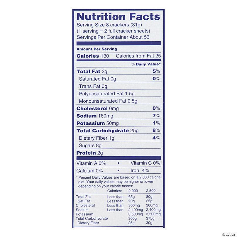 Unbleached enriched flour (wheat flour, niacin, reduced iron, thiamine mononitrate {vitamin B1}, riboflavin {vitamin B2}, folic acid), graham flour (whole grain wheat flour), sugar, canola oil, honey, leavening, (baking soda), calcium phosphate), salt, soy, lecithin, artificial flavor. CONTAINS: WHEAT, SOY. KOSHER product.