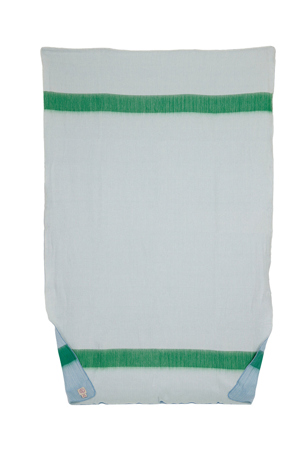 One side reveals a rich, saturated powder blue and kelly green stripe woven with depth and warmth, perfect for adding a bold, modern layer to any space. Flip it over, and the mood transforms—an elegant, airy off-white blended with a hint of powder blue and kelly green creates a softer, more serene aesthetic that invites calm sophistication. It’s like having two impeccably designed textiles in one, each crafted with intention, harmony, and balance.