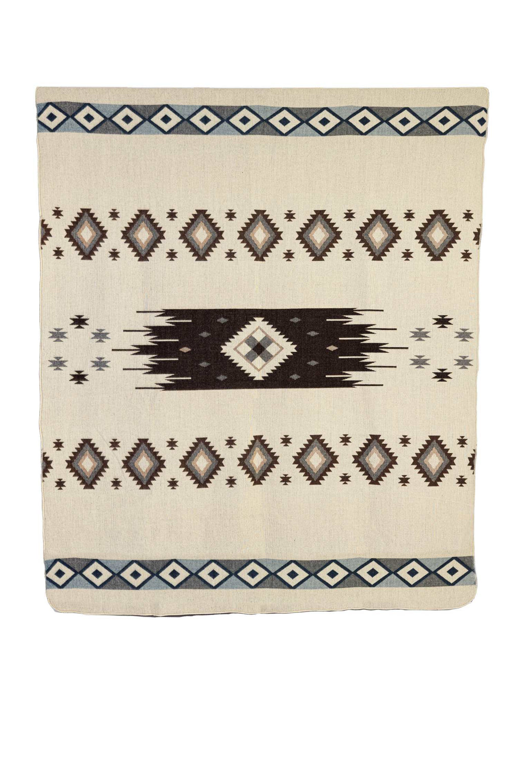 Blending luxuriously soft alpaca fibers with subtle polyester threads for color and superior softness, these throws are beautifully handmade, very cozy, and versatile — ideal for styling across seasons or adding artisanal warmth to modern interiors. Our Diamond Throw has shades of red, brown, blue, and cream and is reversible. The other side features a light cream with accents of red, brown, and blue.